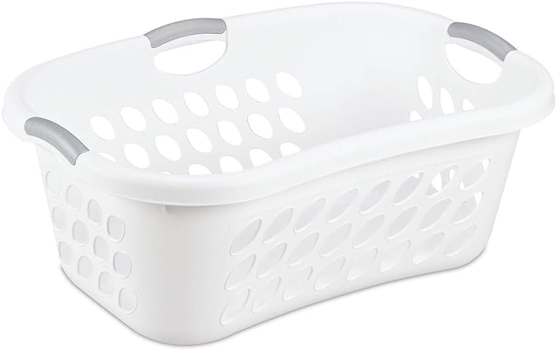 - 1-1/4 Bushel, 44 liter, ultra hip hold laundry basket, white with Gray handle inserts 26-3/8L x 18-1/8W x10h