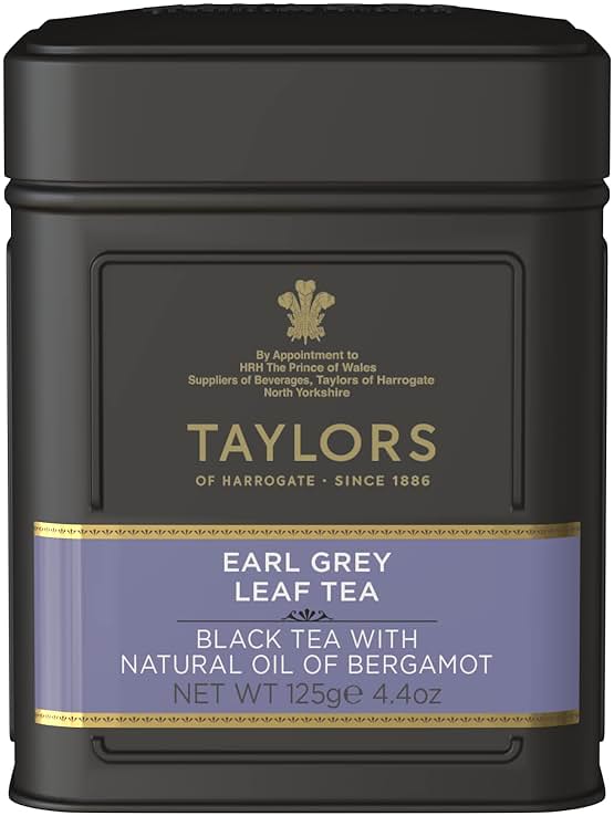 Taylors of Harrogate Earl Grey, Loose Leaf, 4.41 Ounce Tin Caddy (Pack of 1), Fragrant, Delicate & Light, Caffeinated, Premium Whole Leaf Tea