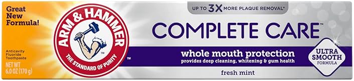 ARM & HAMMER Complete Care Toothpaste, Teeth Whitening Toothpaste, Fluoride, Whole Mouth Protection, Fresh Mint Flavor, 6.0 oz (Pack of 1)