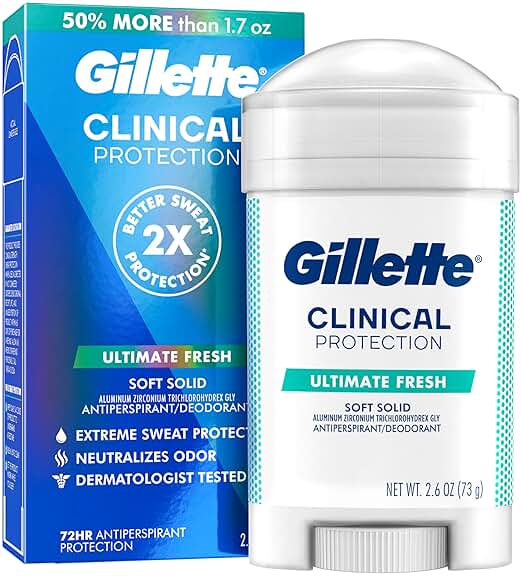 - #1 CLINICAL BRAND FOR MEN — Gillette delivers the best a man can get with Clinical antiperspirant & deodorant, providing 72-hour antiperspirant protection while neutralizing odors (#1 Clinical Brand for Men P52W using Nielsen sales data as of 1/11/25)