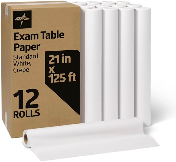 Medline Medical Exam Table Paper, Crepe Table Paper, 21 inches x 125 feet, Case of 12 Rolls