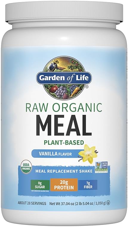 Garden of Life Meal Replacement Shakes, Raw Organic, Vanilla Protein Powder with Plant Based Pea Protein, Sprouts, Greens, Probiotics, Dairy Free 28 Servings
