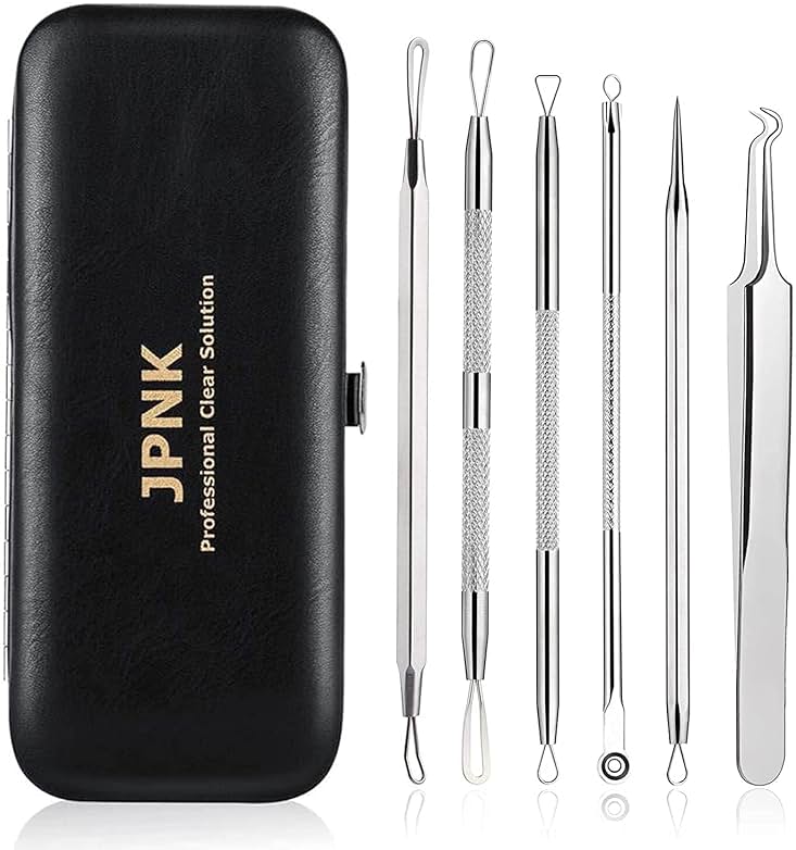 JPNK Blackhead Remover Comedone Extractor Acne Removal Kit.. | for Blemish, Whitehead Popping, 6 Pcs, Zit Removing, for Nose Face, Tools, with a Leather Bag