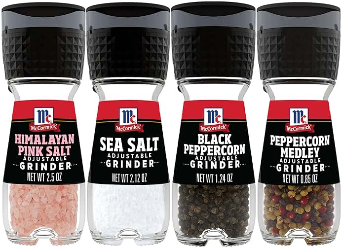 McCormick Salt & Pepper Grinder Variety Pack, Himalayan Pink Salt, Sea Salt, Black Peppercorn, and Peppercorn Medley, 6.47 oz