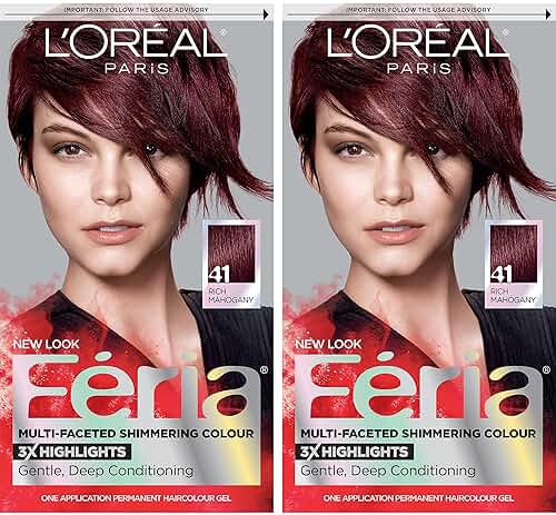 L’Oréal Paris Feria Multi-Faceted Shimmering Permanent Hair Color, 41 Crushed Garnet, Pack of 2 Hair Dye