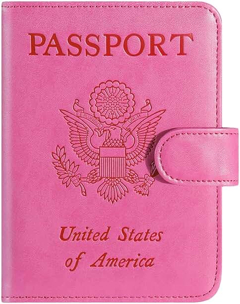 Passport Holder Cover Wallet RFID Blocking Leather Card Case Travel Accessories for Women Men (Pink)