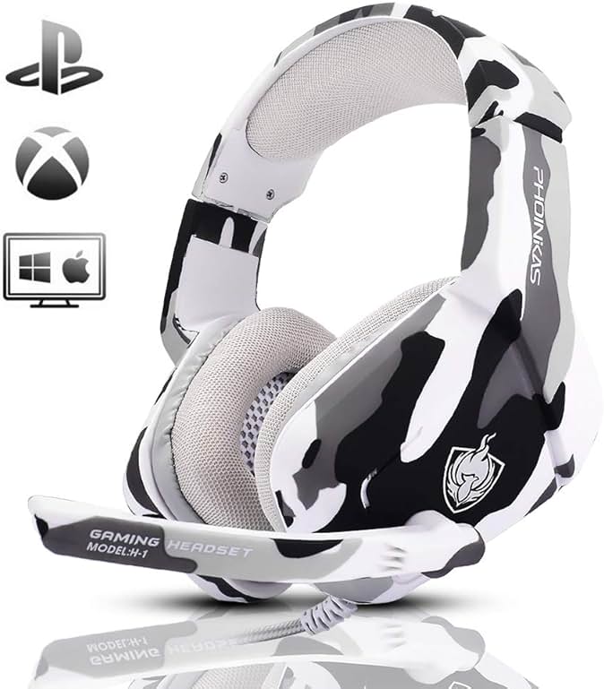 PHOINIKAS Gaming Headset for PS4, Xbox One, PC, Laptop, Mac, Nintendo Switch, 3.5MM PS4 Stereo Headset Over Ear Headphones with Noise-Cancelling Mic, Bass Surround - Camo