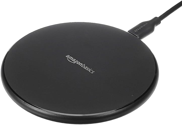 Amazon Basics 15W Qi Certified Wireless Charging Pad for iPhone 16/15/14/13/12/11/X, Samsung and More, with USB Cable, Black
