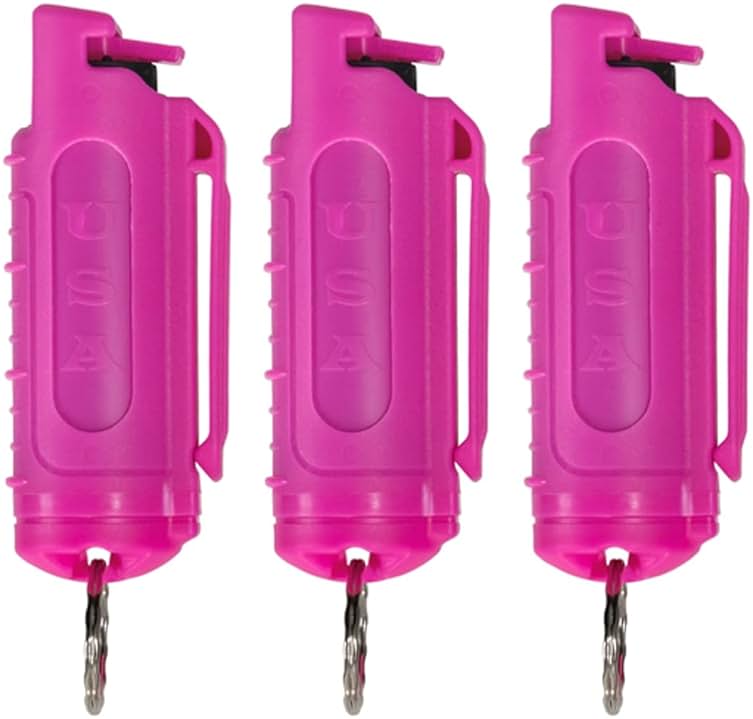Police Magnum Keychain Pepper Spray Self Defense Belt Clip Holder - 3 Pack Tactical Maximum Strength OC with Dye - Small Safety Key Chains for Women & Men - Made in The USA
