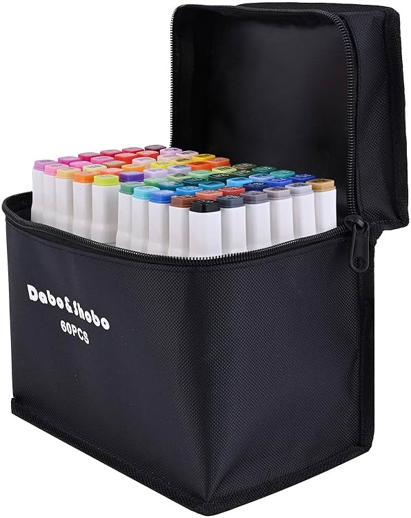 Dabo&Shobo 60 Colors Drawing Markers, Dual Tip Markers, Fine & Chisel Coloring Marker for Adult Coloring And Sketching