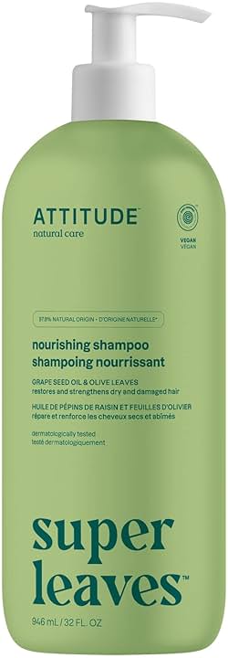 ATTITUDE Nourishing Hair Shampoo, EWG Verified, For Dry and Damaged Hair, Naturally Derived Ingredients, Vegan and Plant Based, Grapeseed Oil and Olive Leaves, 32 Fl Oz