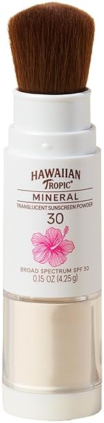 Hawaiian Tropic Mineral Powder Sunscreen Brush SPF 30 | Beach Essentials, Zinc Oxide Mineral Sunscreen Powder SPF, Face Sunblock Travel Size, Brush On Sun Screen Protector for Face and Body, 0.15oz