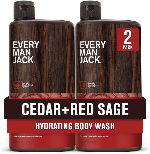 Every Man Jack Nourishing Cedar + Red Sage Mens Body Wash for All Skin Types - Naturally Derived Ingredients - Cleanse and Hydrate Skin with Coconut and Glycerin - 24oz 2 Bottles