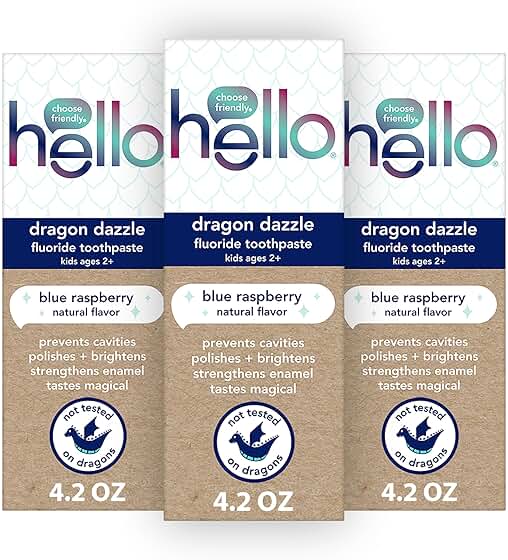 - WHAT I’M GETTING: Includes three (3) 4.2 oz tubes of hello Dragon Dazzle Kids Toothpaste with Fluoride, Blue Raspberry Toothpaste for Kids