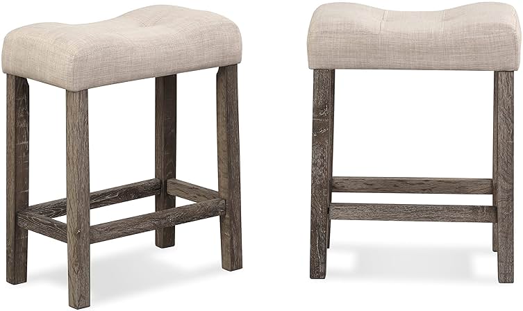 Roundhill Furniture Sora Button Tufted Counter Height Saddle Stools, Set of 2, Taupe