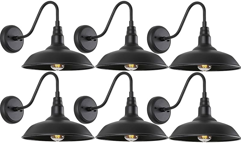 - Farmhouse Style Wall Light Fixture: Featured with its classic gooseneck arm, simple 10 inch dome design, finished by a matte black powder coating, this barn style light brings a pleasing and modern simplistic elements to both exterior and interior place. The open shade bottom of this sconce can spread the light farther, meets the illumination needs for your farmhouse, cabin, garage, doorway, garden, porch, yard