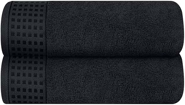 GLAMBURG 100% Cotton 2 Pack Oversized Bath Towel Set 28x55 Inches, Ultra Soft Highly Absorbant Compact Quickdry & Lightweight Large Bath Towels, Ideal for Gym Travel Camp Pool - Black