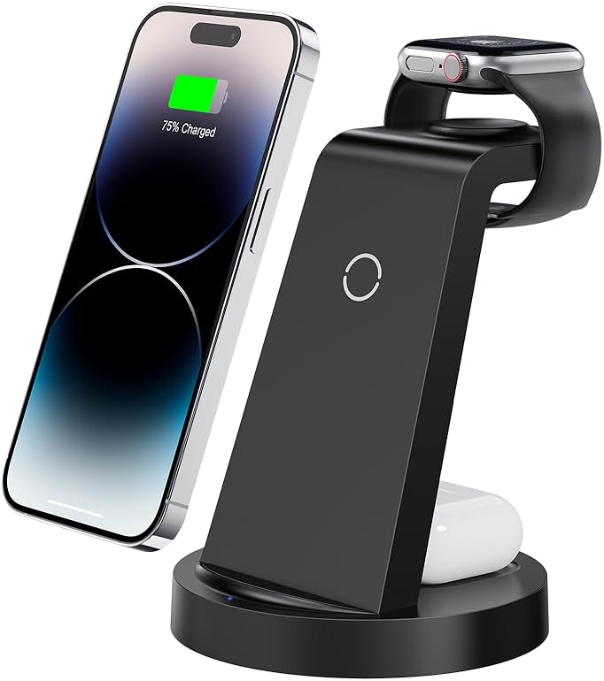 - Highly Compatible : Perfect 3 in 1 charging dock for Apple , Compatible with iPhone 16e/16/16 Plus/16Pro/16 Pro max15/15 Plus/15Pro/15 Pro max/14/14 Plus/14Pro/14 Pro max/13/13Pro/13Pro Max/13 mini/12/12Pro/12Pro Max/12 mini/11/11Pro/11Pro Max/XS/XR/XS MAX/X/8/ 8Plus & Apple iWatch 10/9/8/7/6/5/4/3/2/SE/Ultra 1/2 & AirPods Pro2/Pro/4/3/2(Note:Airpods Only Support Mag-Safe Charging Case)