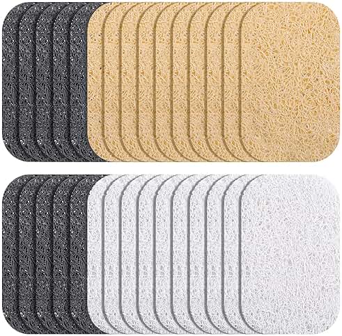 30 Pcs Soap Saver Pads Bar Soap Savers Draining Lift Pad Dish Holder Bar Accessories Draining Mat for Shower Kitchen Bathroom Cleaning Supplies(Gray, Beige, Cream White)