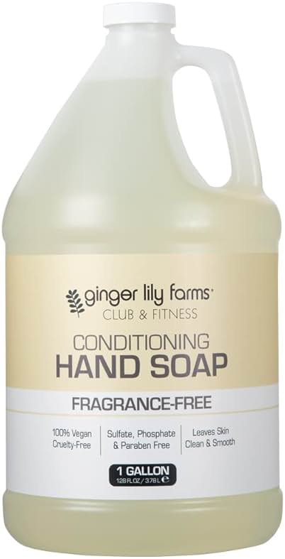 Ginger Lily Farms Club & Fitness Conditioning Liquid Hand Soap Refill, 100% Vegan & Cruelty-Free, Fragrance Free, 1 Gallon (128 fl oz)