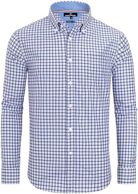 Alimens & Gentle Men's Plaid Button Down Shirts Cotton Long Sleeve Dress Shirts Regular Fit Gingham Shirts