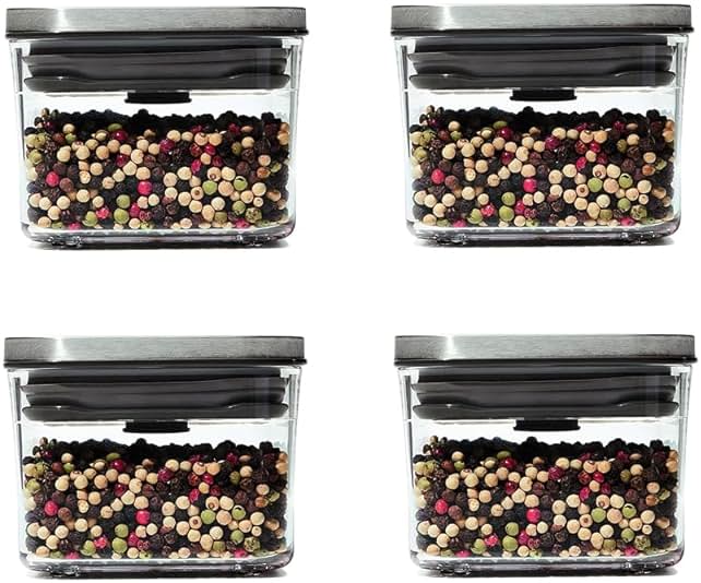 OXO Steel POP Small Square Container - 0.4 Qt (Pack of 4) Airtight Food Storage for Dried Herbs & More, Grey
