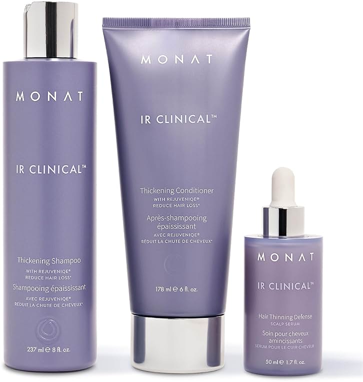 - [COMPLETE SYSTEM] - MONAT IR Clinical System features the IR Clinical Hair Thinning Defense System, IR Clinical Thickening Shampoo and the IR Clinical Thickening Conditioner.