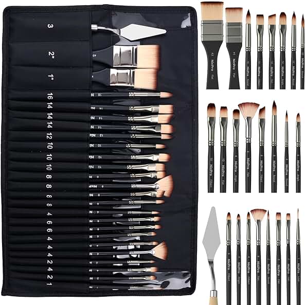 Nicpro 26pcs Paint Brush Set, Professional Paintbrushes with Palette Knife, Craft Paint Brushes for Acrylic Painting, Oil, Watercolor, Gouache & Canvas, Drawing & Art Supplies for Adults, Kids Artists