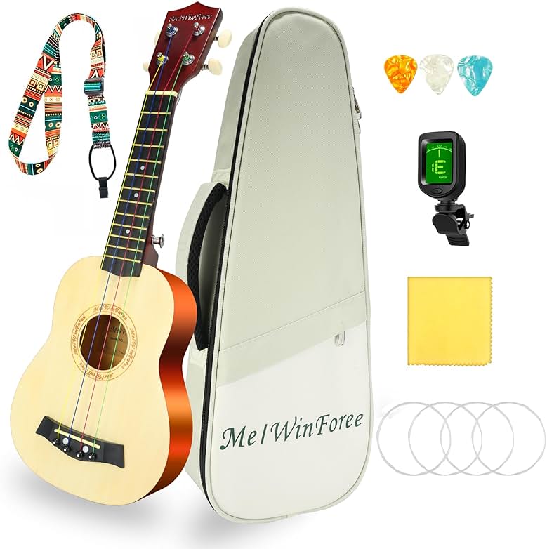 The MelWinForee Soprano Ukulele is constructed using eco-friendly materials such as basswood for the body and blackwood for the fingerboard and bridge, which ensures a sustainable source of wood. The use of nylon strings contributes to its durability and longevity. This beginner kit not only provides quality craftsmanship but also encourages music learning among kids in a fun, accessible manner, fostering creativity without extensive environmental impact.