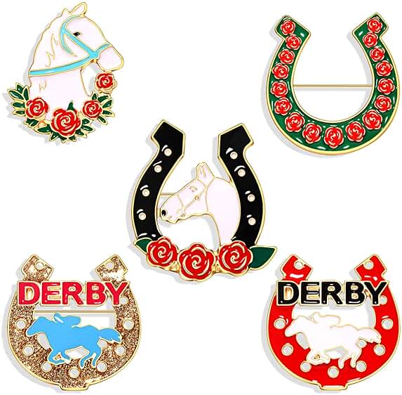 - ღ Kentucky Derby Brooch: Run for the ROSES! Get ready for the 150th Kentucky Derby Anniversary with our Derby Brooches! They capture the spirit of the horse races, features classic Derby elements from racing horses, rose floral horseshoes to colorful silks riding suit, perfect for any Derby Day occasion coming up! Let the Derby horse horseshoe brooches become a symbol of your love for horse racing, showcasing your impeccable taste in fashion accessories