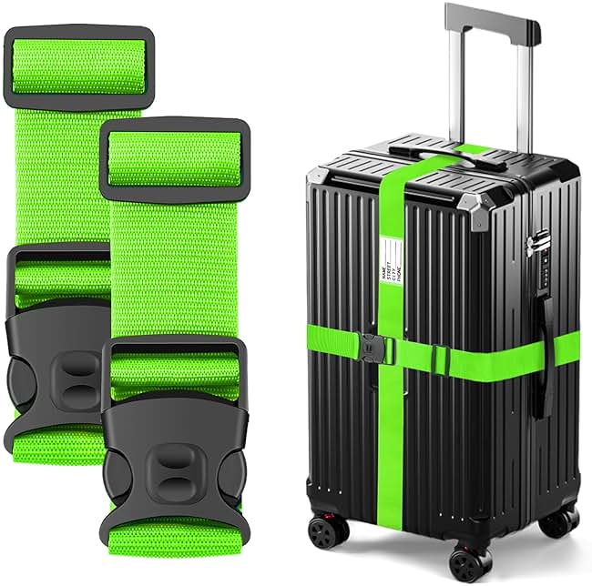 BILIONE Luggage Straps Adjustable Suitcase Belt, Lockable Against Accidental Opening, Easy to Identify Travel Accessories, Add a Bag Connector Holds Suitcase Together (2-Energetic Green)
