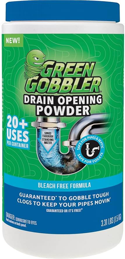 The Green Gobbler Drain Clog Remover & Drain Cleaner Powder scores high on sustainability due to its eco-friendly and septic-safe formula. It does not contain bleach or sodium hydroxide, making it safe for pipes, septic systems, and the environment. The product's effectiveness in breaking down tough clogs reduces the need for harsher chemical cleaners, promoting a more eco-conscious approach to drain maintenance.