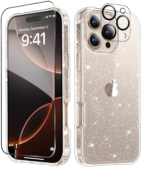 - [For Phone 16 Pro Case] MIODIK Designed for Phone 16 Pro Phone Case 6.3 inch 2024. The package contains: 1X iPhone 16 Pro glitter case, screen protector and camera lens protector.