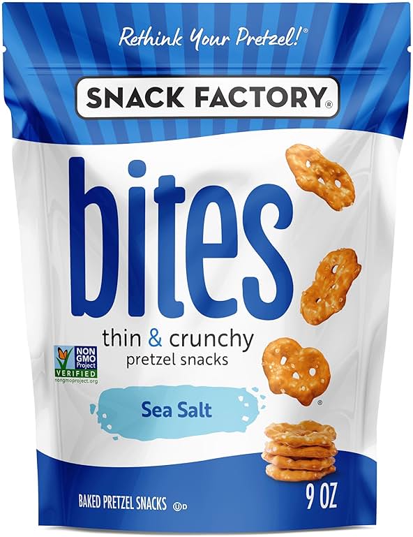 - Includes one (1) 9-ounce bag of snack factory sea salt bites