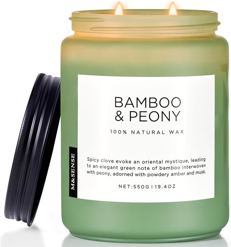 M&SENSE Bamboo Peony Spring Large Candles for Home Scented 19.4oz 110 Hour Long Lasting Burn Natural Organic Soy Candle Gifts for Women, Fresh Smelling Aromatherapy Gifts for Stress Relief