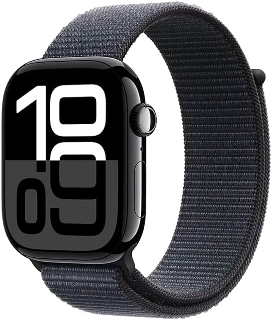 Apple Watch Series 10 [GPS, 46mm] - Jet Black Aluminum Case with Ink Sport Loop (Renewed)