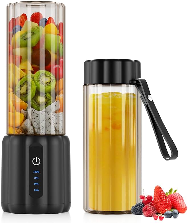 - LARGE CAPACITY: This cordless mini blender portable has a generous 17oz (500ml) capacity, allows you to quickly and easily make juice, smoothies, protein powder, or other mixed drinks wherever you are. Product Size: 3"D x 3"W x 9"H