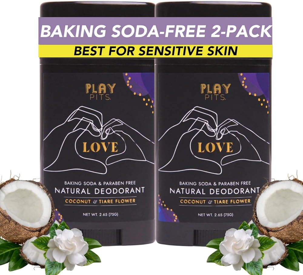 PLAY PITS - 2 Pack - Natural Deodorant - Safe for Men & Women w/Sensitive Skin - Clean, Non-Toxic, & Paraben Free – LOVE Scent - Infused w/Essential Oils – 2.65 Oz.