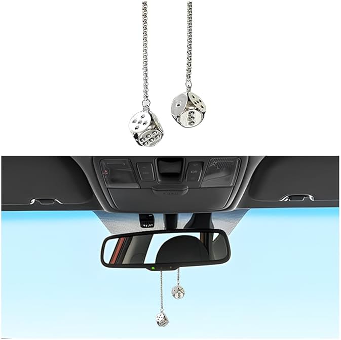 - Cool Decoration: This pair of car mirror dice charms has a delicate look and a smooth reflective surface that makes it sparkle in the sunlight. You can wrap the chain to adjust the length to avoid affecting the driver's vision or hitting the glass when braking. It can also sway slightly when driving, which can well eliminate the driver's visual fatigue and improve safety.