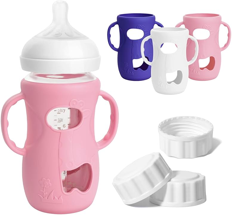 - Package Included: Each set includes 1 white, 1 pink, 1 purple silicone bottle sleeves, and 3 bottle caps. Compatible with dishwashers and sterilizers, these high-quality silicone materials guarantee durability for long-term use. Only suitable for Philips AVENT Natural Glass Baby Bottle 8 oz