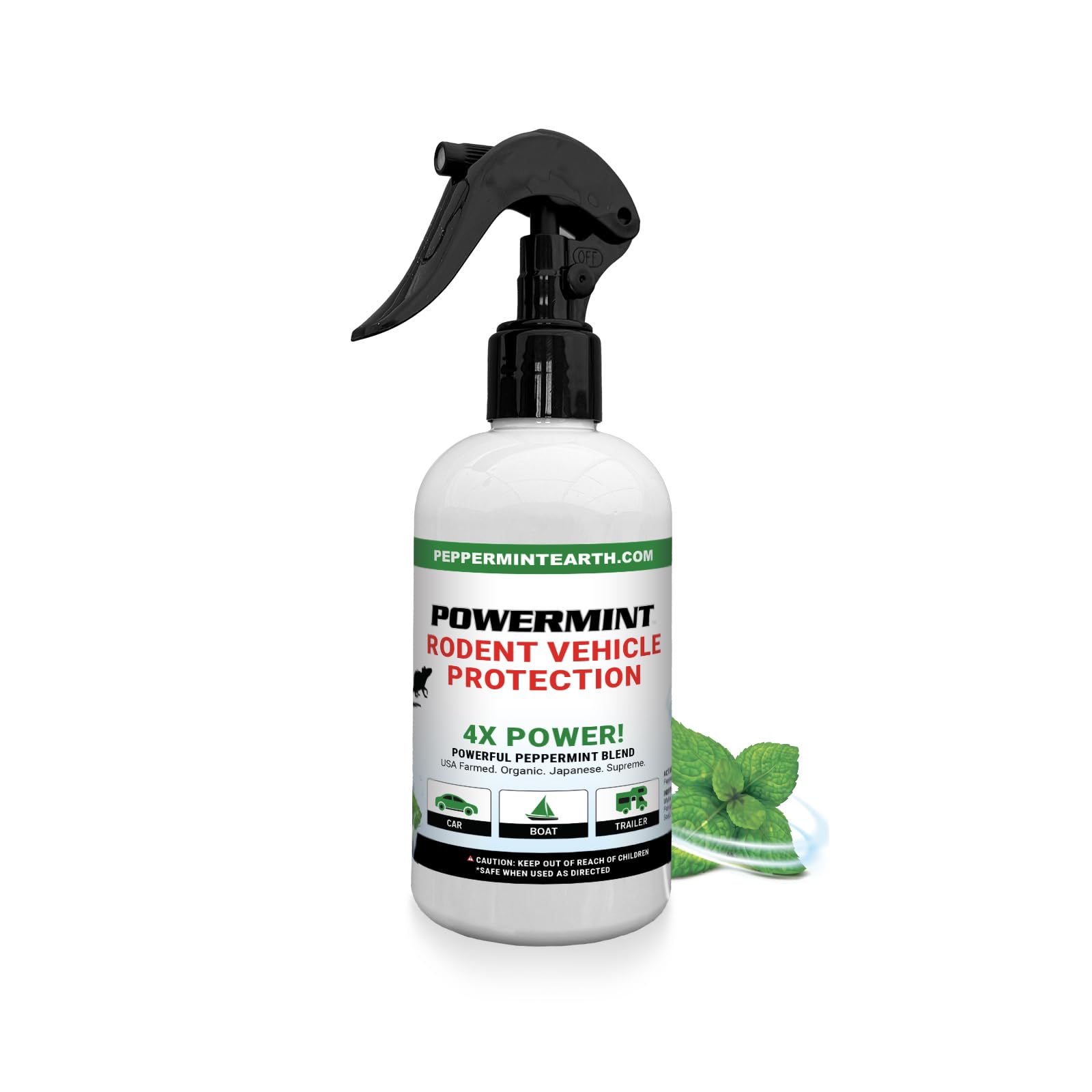 Powermint 8 Oz Peppermint Oil Rodent Vehicle Protection Spray - for Vehicle Engines and Interiors - Cars, Trucks, RVs, and Boats