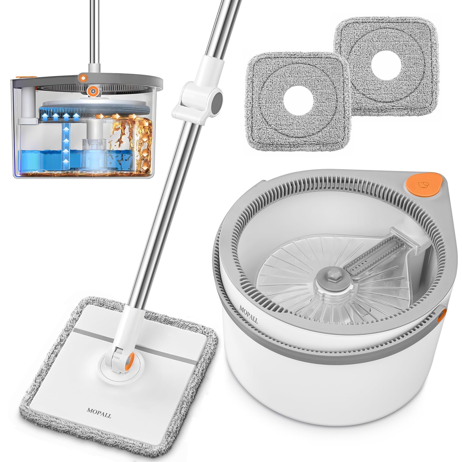 The MOPALL Spin Mop and Bucket Set features a dual-chamber system that separates clean and dirty water, reducing water waste and ensuring more efficient cleaning. The 2-in-1 wet and dry use with microfiber pads is both durable and environmentally friendly. The product's design allows for easy replacement of pads, making it a more sustainable choice. Additionally, the machine washable pads reduce the need for disposable cleaning materials.